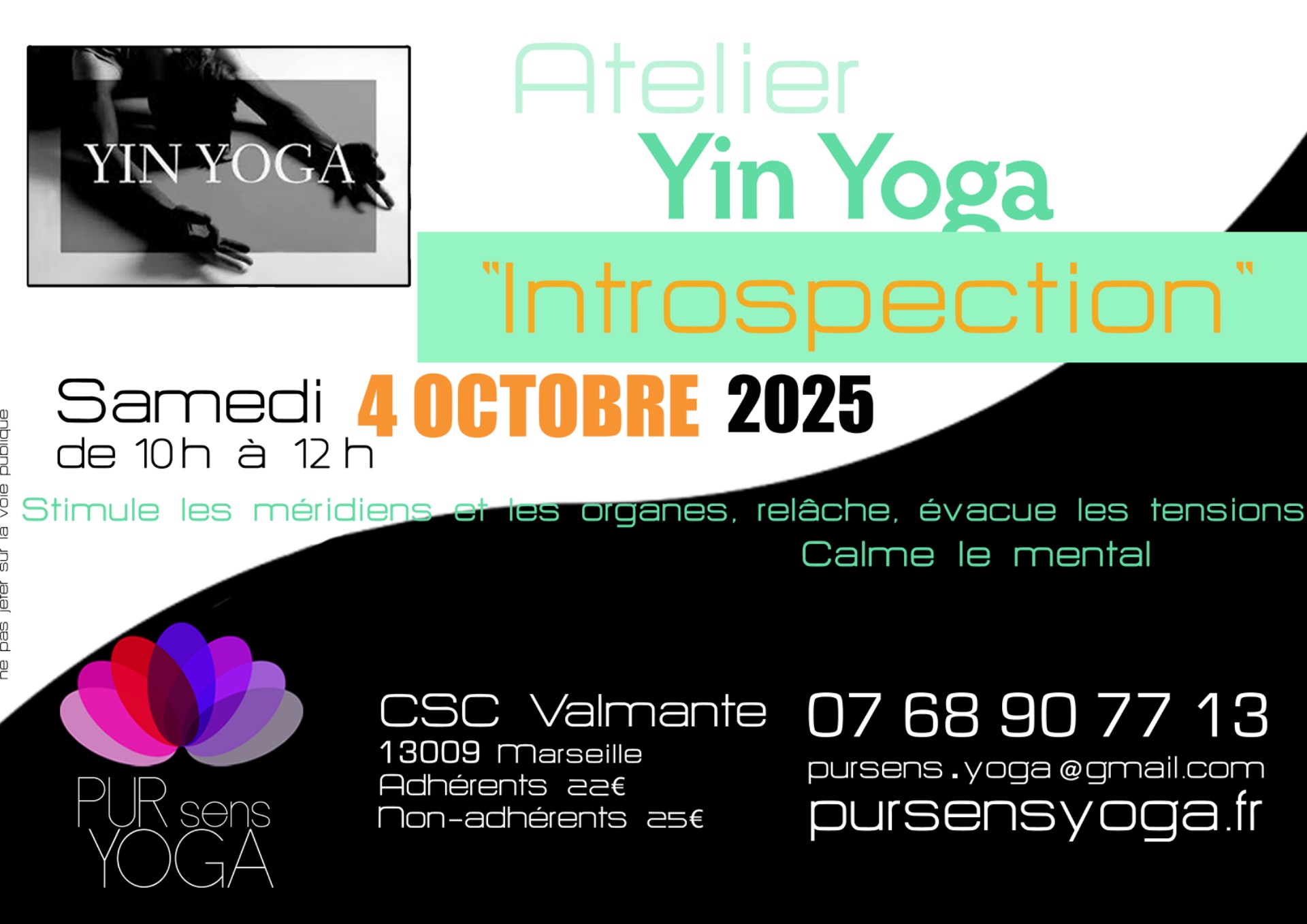 Atelier Yin Yoga " Introspection" les samedi 4 et 11 OCTOBRE 2025 de 10h à 12h au CSC Valmante ... (réservation recommandée).