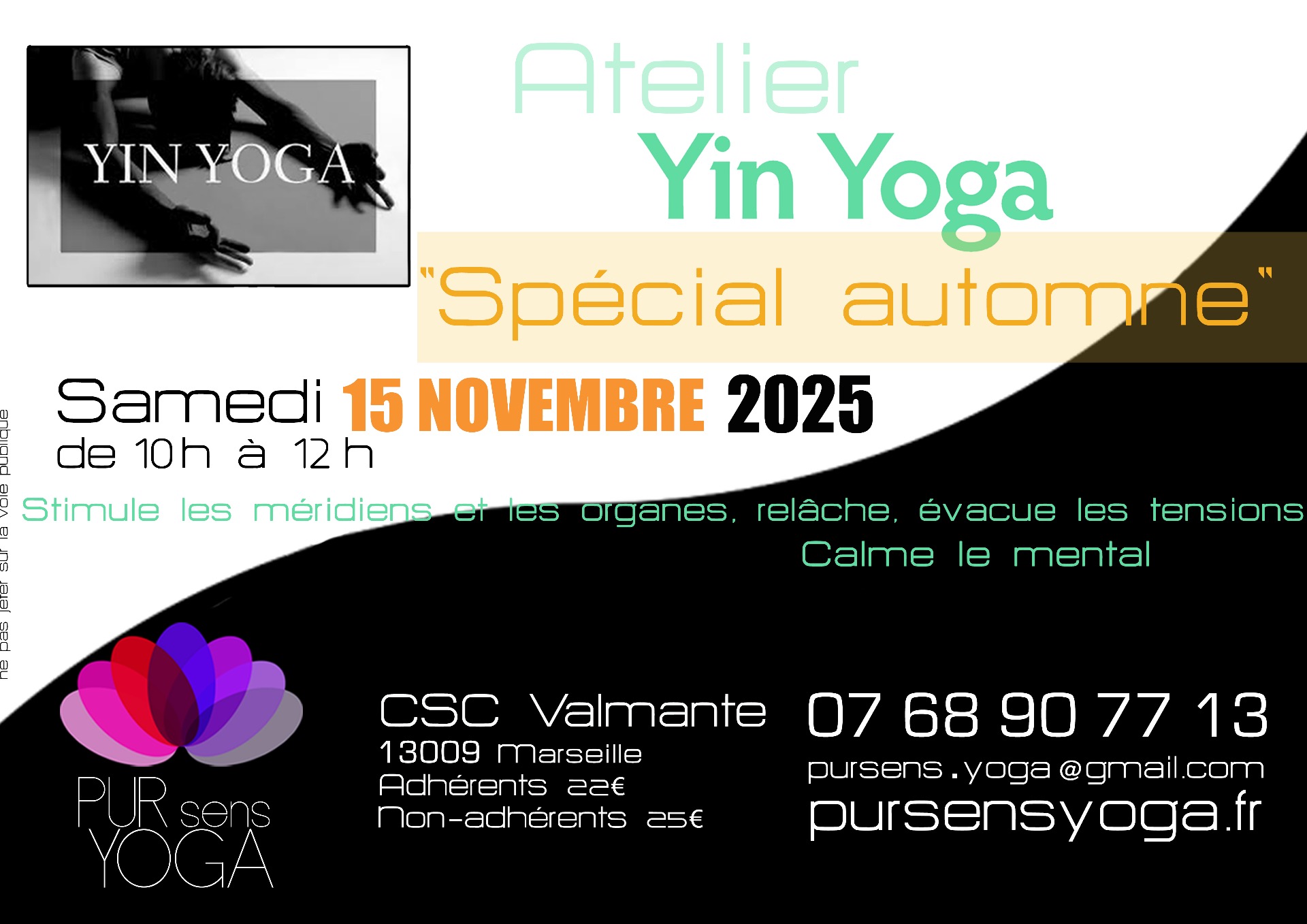 Atelier Yin Yoga " Introspection" les samedi 15 et 22 NOVEMBRE 2025 de 10h à 12h au CSC Valmante ... (réservation recommandée).