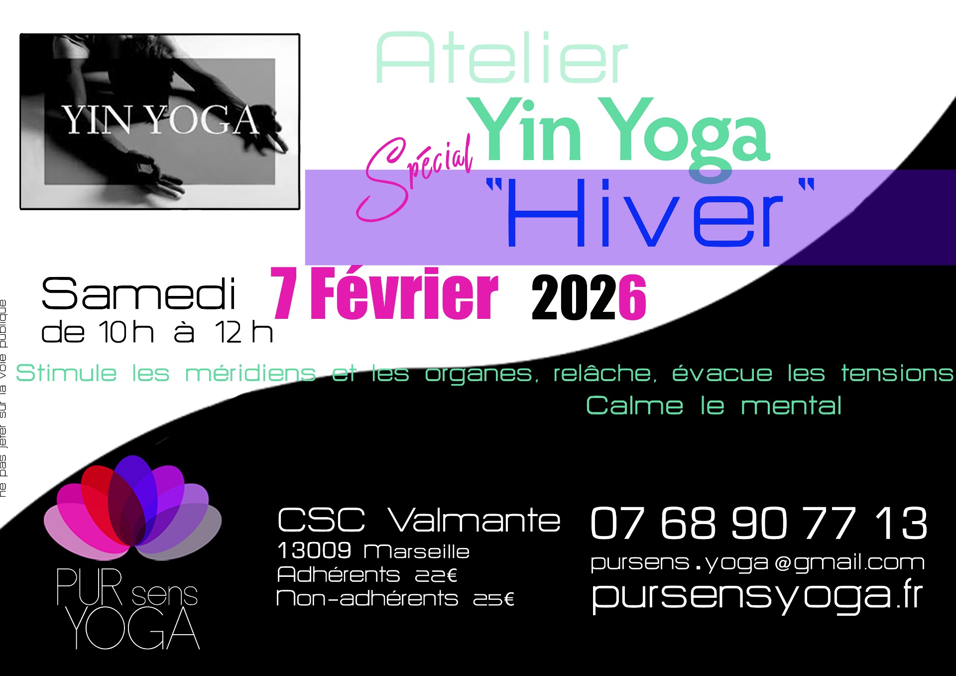 Atelier Yin Yoga " Spécial Hiver" le samedi 7 FEVRIER 2026 de 10h à 12h au CSC Valmante ... (réservation recommandée).