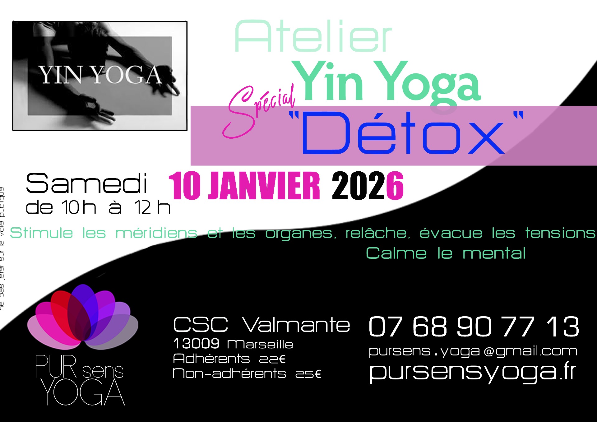 Atelier Yin Yoga " Spécial détox" les samedi 10 et 17 JANVIER 2026 de 10h à 12h au CSC Valmante ... (réservation recommandée).